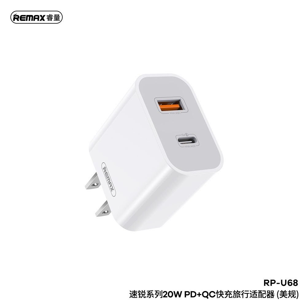 Empower your charging routine with the REMAX RP-U68 Surie Series 20W PD+QC Fast Charger. This powerful charger combines 20W Power Delivery (PD) and Quick Charge (QC) technologies, ensuring speed and efficiency for all your devices. Whether you need a quick power boost or a full charge, the RP-U68 delivers outstanding performance.